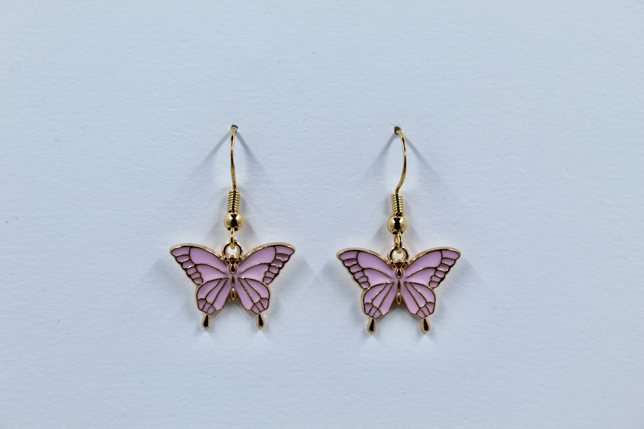 Bring a touch of delicate, soft color to your look with these charming Blush Pink Butterfly Drop Earrings. These pretty earrings capture a sense of carefree femininity and grace.