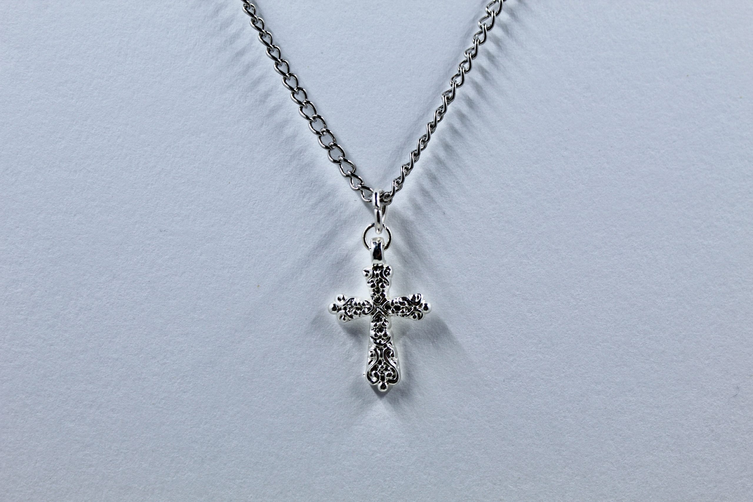 • Lustrous Silver Tone: Crafted with a polished silver-tone finish, the cross catches the light beautifully, highlighting its intricate design and offering a brilliant shine.