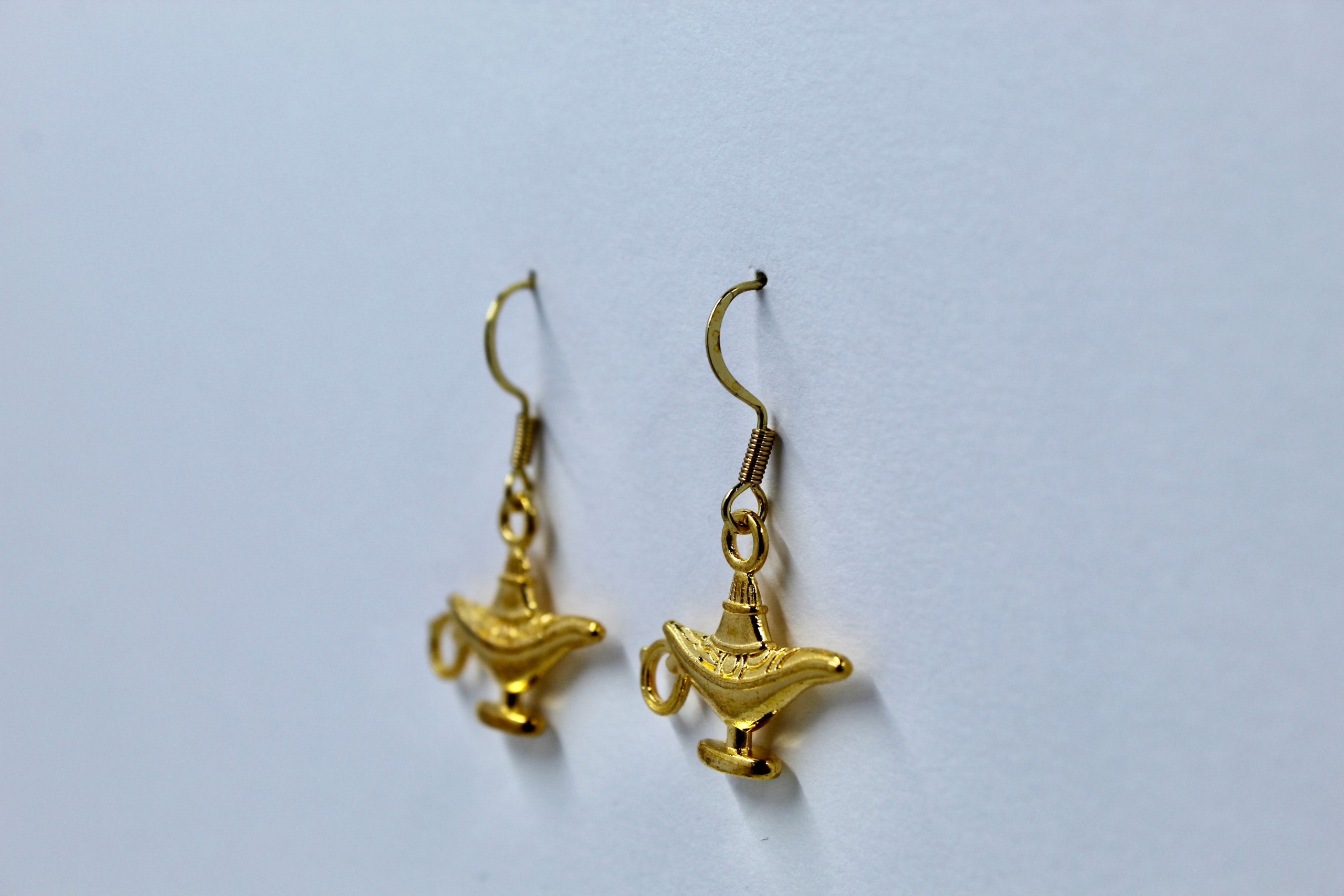 Enchanted Design: Each earring features a highly detailed charm of the legendary Magic Lamp in a bright, polished gold finish. This iconic symbol of granting wishes adds a playful and mystical touch to any look.