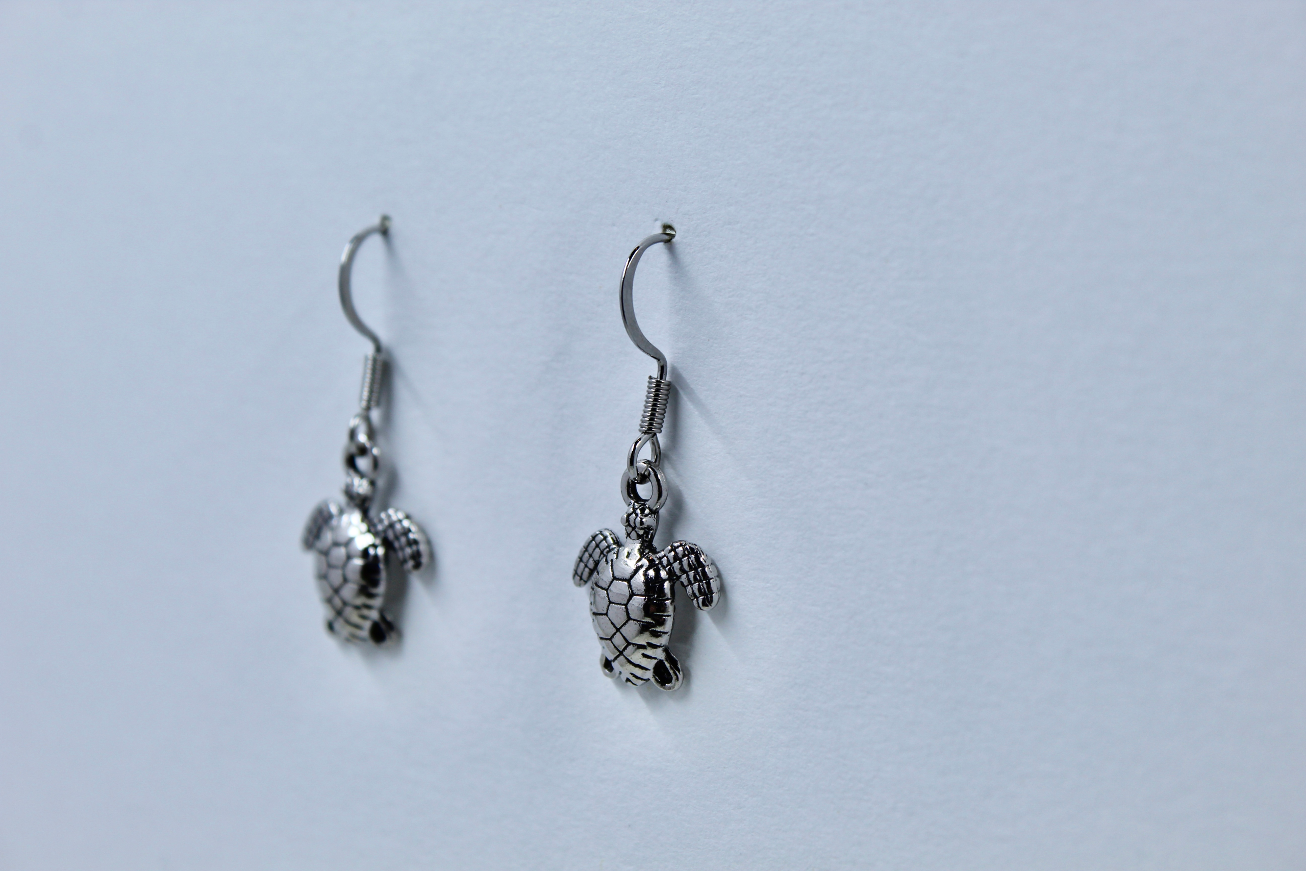 Intricate Marine Design: Each earring features a beautifully textured sea turtle charm, showcasing the detailed pattern of the shell and the elegant curve of its flippers. The antique silver-tone finish highlights the intricate craftsmanship.