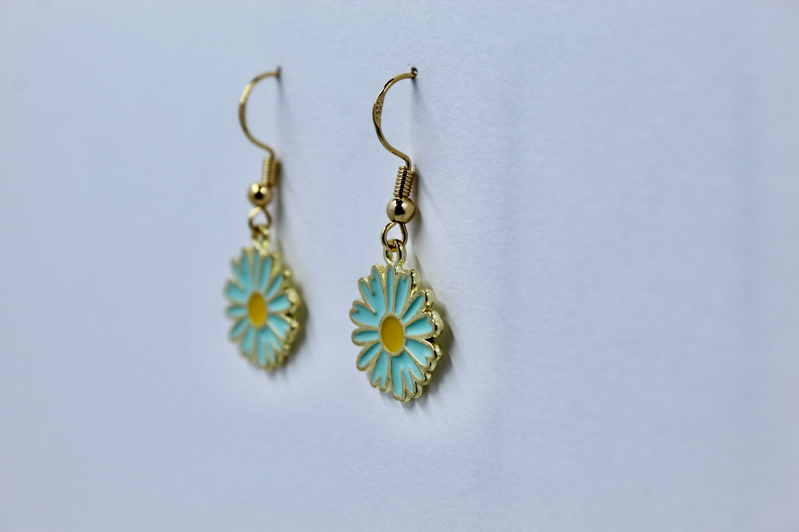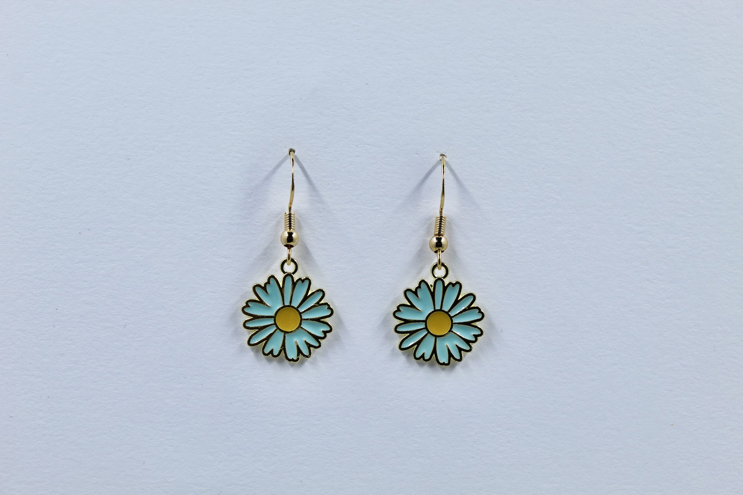 • Cool & Cheerful Design: Each earring showcases a perfectly formed daisy charm with tranquil sky-blue enamel petals and a bright, sunny yellow center, all elegantly outlined in a warm gold-tone metal. This unique color combination evokes clear skies and blooming meadows.