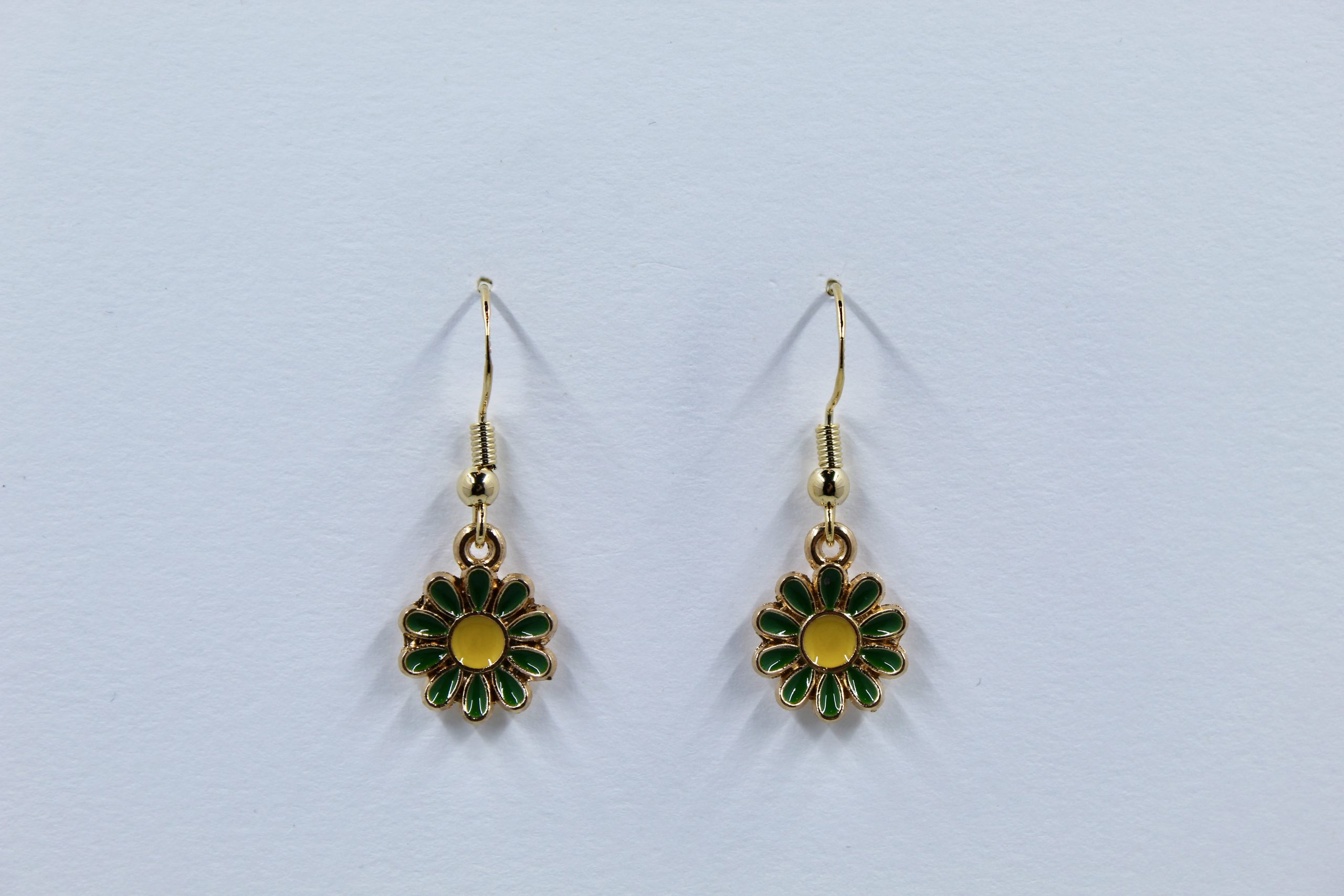 Design: Each charm is shaped like a daisy with a bright yellow center, surrounded by glossy enamel petals. The gold-tone trim and backing complement the sunny colors beautifully.