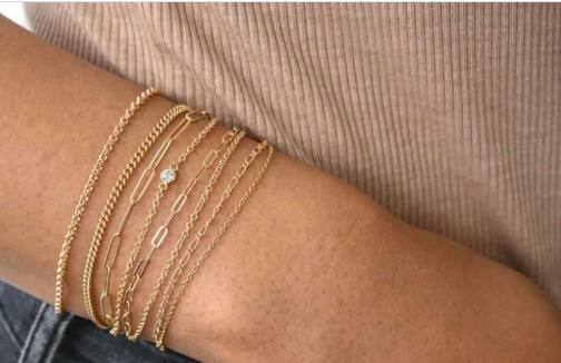 Clasp free permanent jewelry layered on a woman’s wrist, highlighting the seamless, personalized fit of the forever jewelry trend.